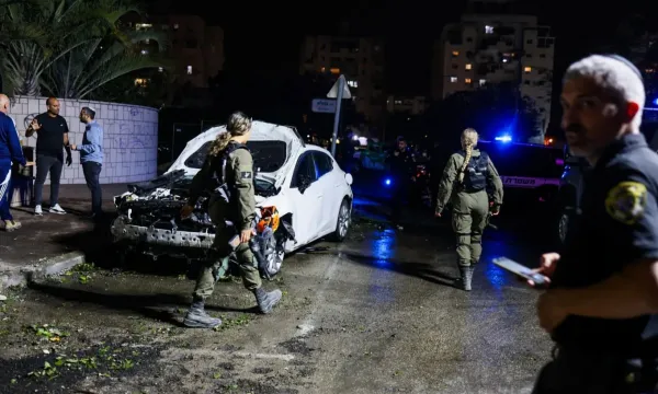 Video do dịch vụ khẩn cấp của Israel công bố cho thấy, một số xe hơi bị hư hại và gạch vụn nằm rải rác trên một con phố.