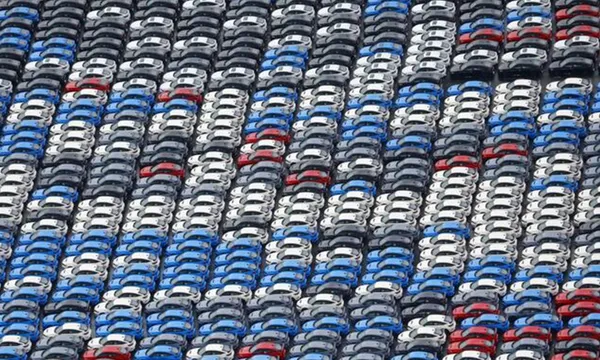 Các phương tiện chuẩn bị xuất khẩu đang đậu tại một cảng ở Yokohama gần Tokyo - Ảnh: Kyodo