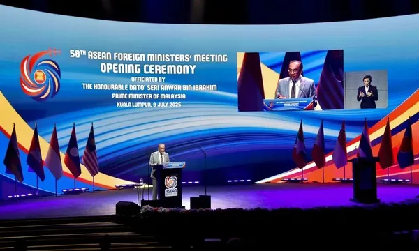 Sáng 9/7, Hội nghị Bộ trưởng Ngoại giao ASEAN lần thứ 58 (AMM-58) đã chính thức khai mạc tại Trung tâm Hội nghị Kuala Lumpur (Malaysia) với sự tham dự của Bộ trưởng Ngoại giao các nước ASEAN và Timor-Leste, Tổng Thư ký ASEAN cùng đại diện quan chức cấp cao từ các nước đối tác.