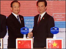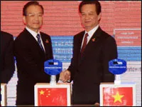 Thủ tướng Nguyễn Tấn Dũng và Thủ tướng Ôn Gia Bảo tại Lễ khai trương Trang thông tin điện tử. ASEAN - Trung Quốc. |