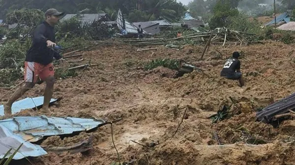 Lở đất xảy ra chôn vùi nhiều ngôi nhà trong làng sau khi mưa lớn xảy ra trong khu vực. Tới nay, ghi nhận có 15 người thiệt mạng và khoảng 42 người mất tích.