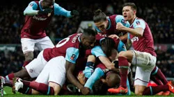 Các cầu thủ West Ham ăn mừng bàn thắng ấn định chiến thắng 2-1 trước Liverpool.