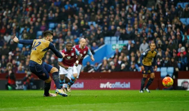 Tiền đạo Giroud thực hiện thành công quả 11 mét đưa Arsenal vượt lên dẫn 1-0 ngay phút thứ 8. Đến phút 38, Ramsey ấn định chiến thắng 2-0. Ảnh: Reuters