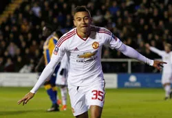 Cầu thủ trẻ Jesse Lingard ăn mừng bàn thắng ấn định chiến thắng 3-0 cho MU. Ảnh: Reuters