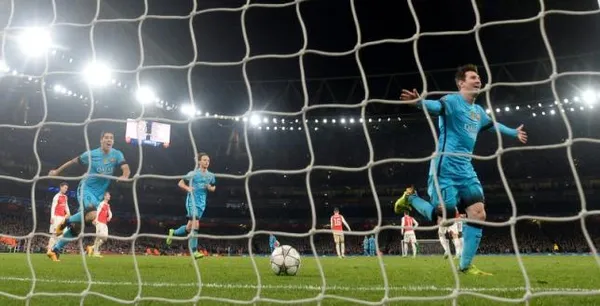Messi ăn mừng bàn thắng tạo ra sự khác biệt giữa Barcelona và Arsenal về tỷ số. Ảnh: Reuters