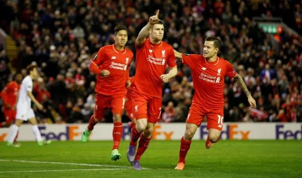 Tiền vệ James Milner ghi bàn thắng duy nhất vào lưới Augsburg từ chấm 11 mét, đưa Liverpool vào vòng trong. Ảnh: Reuters