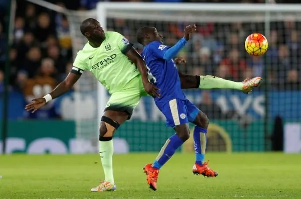 Tiền vệ Yaya Toure của Manchester City tranh bóng với cầu thủ Leicester. Ảnh: Reuters
