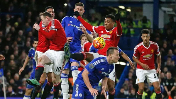 Cầu thủ MU và Chelsea trong pha không chiến.