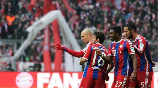 Robben và đồng đội ăn mừng bàn thắng vào lưới Hamburg. Ảnh: Reuters