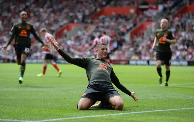 Ross Barkley ăn mừng bàn thắng ghi cho Everton. Ảnh: Reuters
