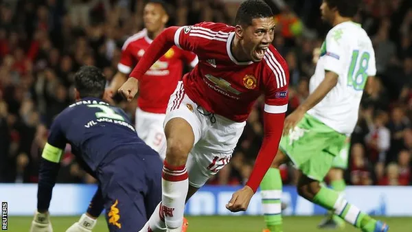 Smalling ăn mừng bàn thắng quyết định cho MU. Ảnh: Reuters