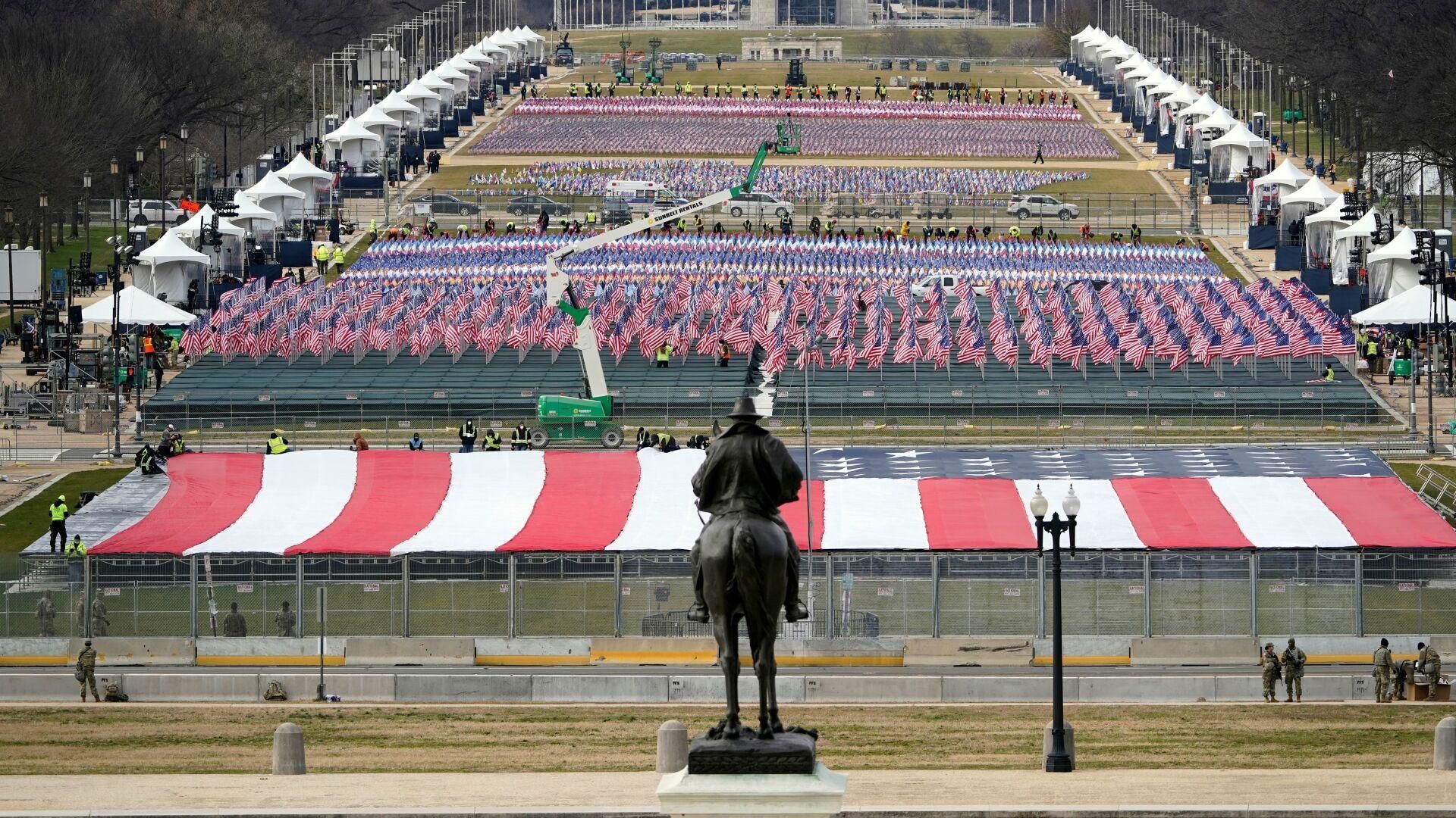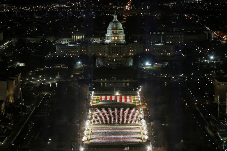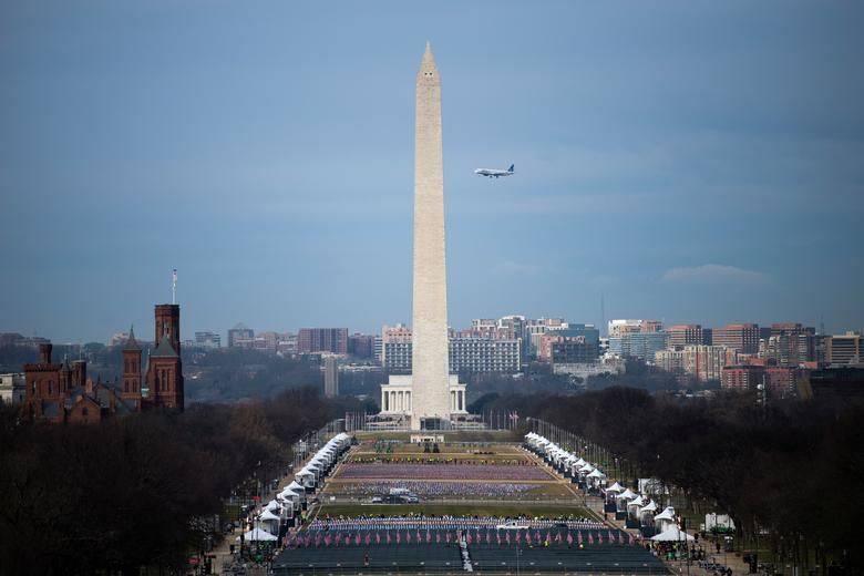 Khu vực Công viên quốc gia National Mall ở thủ đô Washington trước Điện Capitol được trang hoàng rợp cờ Mỹ trước lễ tuyên thệ nhậm chức của Joe Biden. Ảnh: Reuters