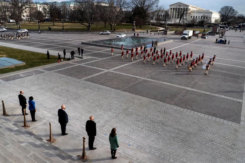 Dàn nhạc quân đội tổng duyệt cho buổi lễ nhậm chức của ông Biden ngày 18/1/2021. Ảnh: Reuters