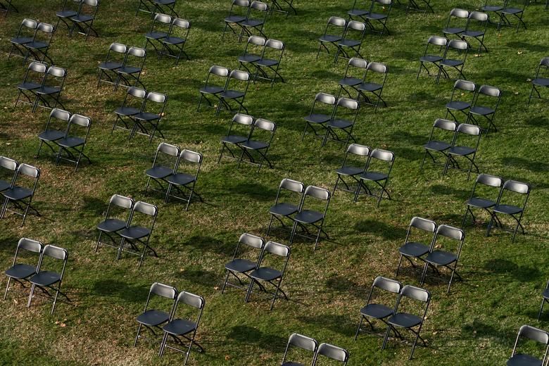 Vị trí ghế ngồi tham dự lễ tuyên thệ nhậm chức được bố trí theo quy tắc giãn cách nhằm bảo đảm an toàn cho các quan chức, khi dịch Covid-19 vẫn đang hoành hành nghiêm trọng ở Mỹ. Ảnh: Reuters