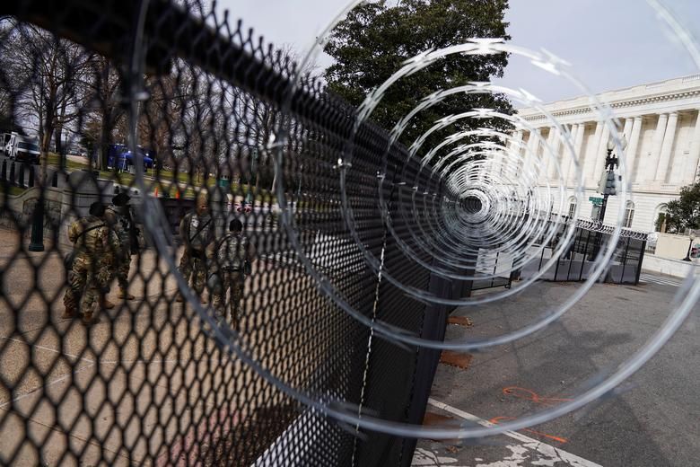 Hàng rào kẽm gai được dựng lên xung quanh Tòa nhà Quốc hội Mỹ. Ảnh: Reuters