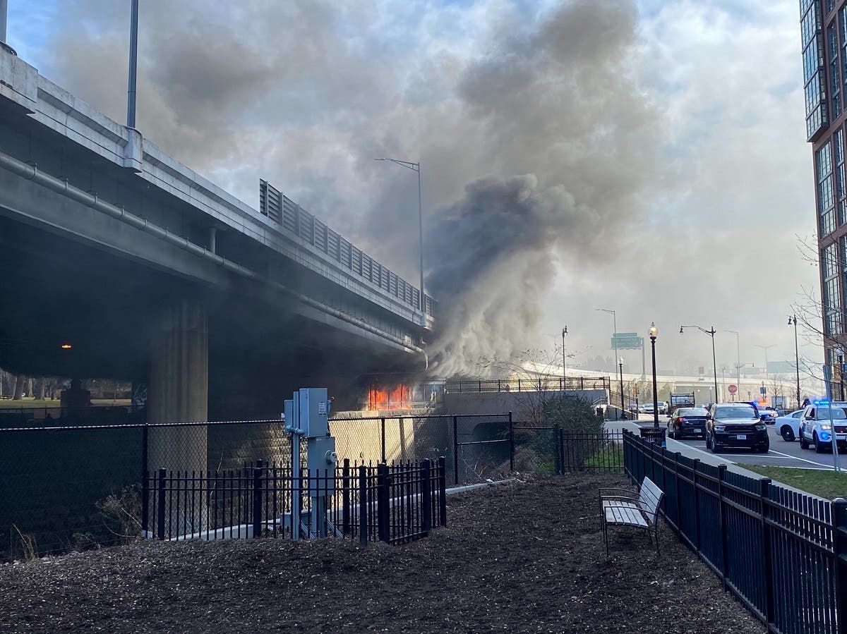 Trước buổi tổng duyệt, một đám cháy lớn bất ngờ bùng phát ngay dưới chân một cây cầu nằm gần Điện Capitol. Ngay lập tức, Điện Capitol đóng cửa, ban bố lệnh phong tỏa toàn khu vực và chỉ gỡ bỏ lệnh phong tỏa sau khi đám cháy được dập tắt hoàn toàn và các rủi ro an ninh có liên quan không còn nữa. Ảnh: Reuters