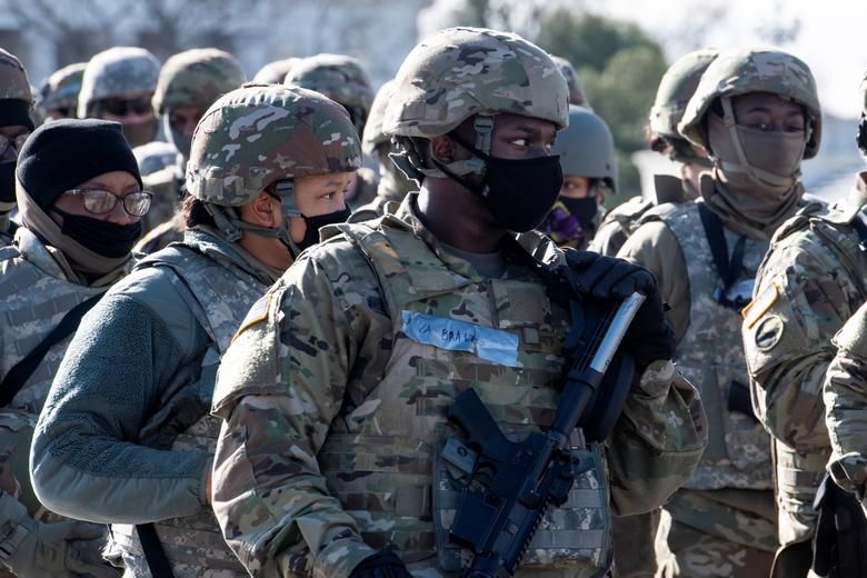 Hàng chục ngàn binh sĩ thuộc Lực lượng Vệ binh quốc gia Mỹ được triển khai để bảo đảm an ninh cho buổi lễ tuyên thệ ngày 20/1/2021. Ảnh: Reuters