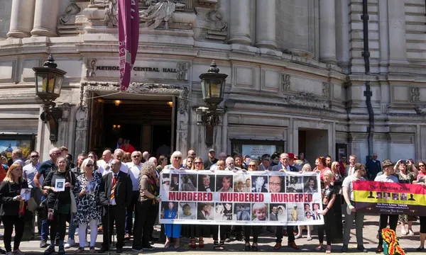 Nạn nhân và các nhà vận động bên ngoài Hội trường Trung tâm ở Westminster, London sau khi báo cáo được công bố - Ảnh: PA