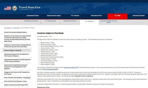 Như vậy, tổng số quốc gia nằm trong diện áp dụng chính sách đặt cọc visa đã tăng lên 38. Danh sách gồm: Bhutan, Botswana, Cộng hòa Trung Phi, Guinea, Guinea-Bissau, Namibia, Turkmenistan và Venezuela…