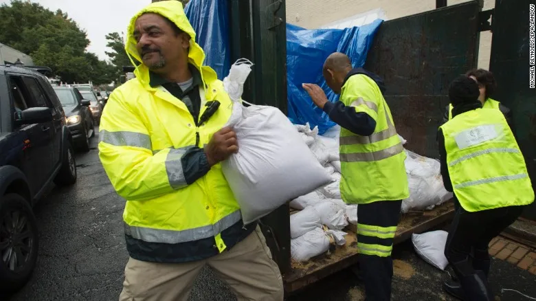 Tình nguyện viên chuẩn bị các bao cát đối phó với lũ tại Virginia ngày 02/10 (Ảnh: CNN)