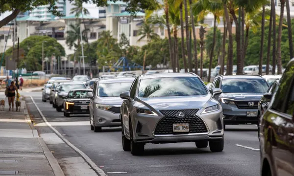 Các phương tiện rời khỏi bãi biển Waikiki sau trận động đất ngoài khơi vùng Viễn Đông của Nga khiến chính quyền ban hành cảnh báo sóng thần ở Oahu, Hawaii - Ảnh: Getty
