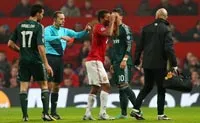 Nani rất thất vọng với quyết định khá nặng tay của trọng tài Cuneyt Cakir.
