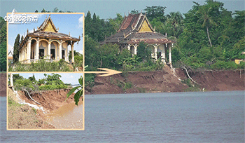 Ngôi chùa hơn 100 tuổi sắp sụt xuống sông Mekong.