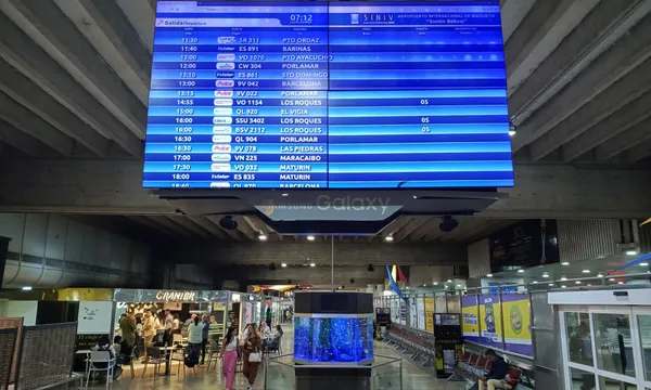 Màn hình hiển thị giờ khởi hành và giờ đến tại sân bay quốc tế Simon Bolivar ở Maiquetia, bang La Guaira, Venezuela ngày 3/6/2024 - Ảnh: Reuters