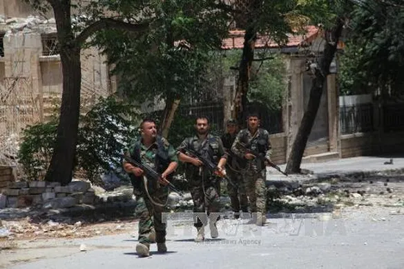 Binh sĩ tuần tra trên đường phố Aleppo (Ảnh: TTXVN)
