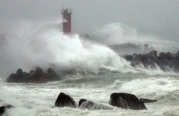 Sóng biển dữ dội tại bờ biển Hà Quốc (Ảnh: AFP)