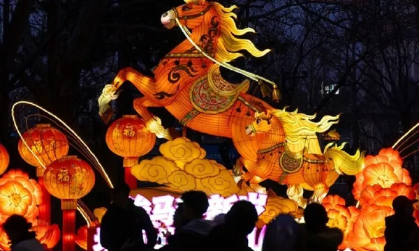 Tại một công viên giải trí ở ngoại ô Bắc Kinh (Trung Quốc), khu trưng bày đèn lồng hình ngựa thu hút đông đảo du khách. Các nghệ nhân múa lửa rước rồng trong màn trình diễn pháo hoa sắt trước thềm lễ hội Tết Nguyên đán. Tết tại Việt Nam, Trung Quốc, Hàn Quốc và nhiều nước châu Á khác sẽ bắt đầu từ ngày 17/2, đánh dấu thời khắc chuyển sang năm mới âm lịch.