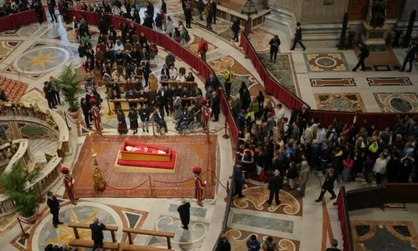 Hôm 25/4, hàng chục ngàn người đã xếp hàng nhiều giờ tại Vương cung thánh đường Thánh Peter để tiễn biệt Giáo hoàng Francis, người qua đời ở tuổi 88 vào ngày 21/4. Để đáp ứng nhu cầu viếng, Tòa thánh Vatican đã kéo dài thời gian mở cửa Vương cung thánh đường đến tận 3 giờ sáng 25/4 trước khi đóng cửa vài giờ rồi mở lại cho những người đến viếng từ trước bình minh. Lễ viếng chính thức kết thúc lúc 19 giờ cùng ngày. Sau đó, chiếc quan tài gỗ của Giáo hoàng Francis được niêm phong.