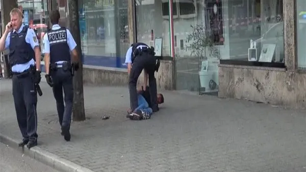 Cảnh sát Đức bắt giữ một thanh niên Syria cầm dao tấn công người đi đường ở TP Reutlingen ngày 24/7 (Ảnh: Reuters)