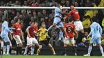 Cầu thủ lập công giúp "Man xanh" thắng quỷ đỏ cả 2 trận mùa này (lượt đi đại thắng 6-1 tại Old Trafford) chính là Vincent Kompany, trung vệ thủ quân này bật cao hơn các hậu vệ MU, đánh đầu hạ thủ môn De Gear từ quả phạt góc của tiền vệ cánh David Silva trong giờ đấu thêm cuối hiệp 1.