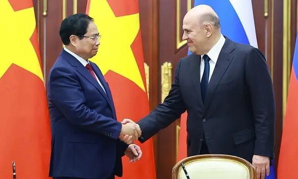 Chiều 23/3 theo giờ địa phương tại thủ đô Moscow, trong chuyến thăm chính thức Liên bang Nga, Thủ tướng Phạm Minh Chính đã hội đàm với Thủ tướng Nga Mikhail Mishustin. Hai nhà lãnh đạo trao đổi về kết quả hợp tác thời gian qua và đề ra phương hướng thúc đẩy quan hệ song phương trong giai đoạn mới.
