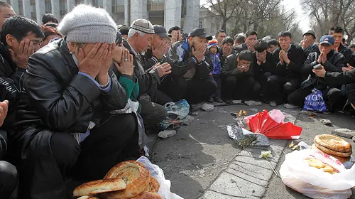 Trừ một cuộc xung đột gần dinh tổng thống khiến hơn 70 người thiệt mạng, sau hai ngày biểu tình, không thấy bóng dáng của cảnh sát và cướp bóc xảy ra tràn lan tại Bishkek.