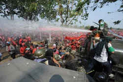 Sau đó, phe áo đỏ lại xông vào Công ty Vệ tinh Thaicom Public Co. Ltd bị Chính phủ Thái Lan phong tỏa hôm 8-4 với lời cáo buộc đã phát tán thông tin có hại cho an ninh quốc gia. Binh sĩ Thái Lan dùng vòi rồng ngăn cản người biểu tình “áo đỏ” bên ngoài trụ sở Công ty Thaicom nhưng không thành. Phe áo đỏ đạt được thỏa thuận sẽ cho họat động trở lại kênh truyền hình vệ tinh nói trên.