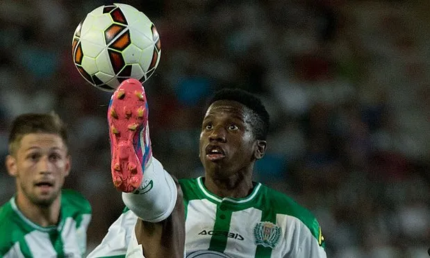 Patrick Ekeng (phải) trong trận đấu của Cordoba CF năm 2014. Ảnh: Gonzalo Arroyo Moreno/Getty Images