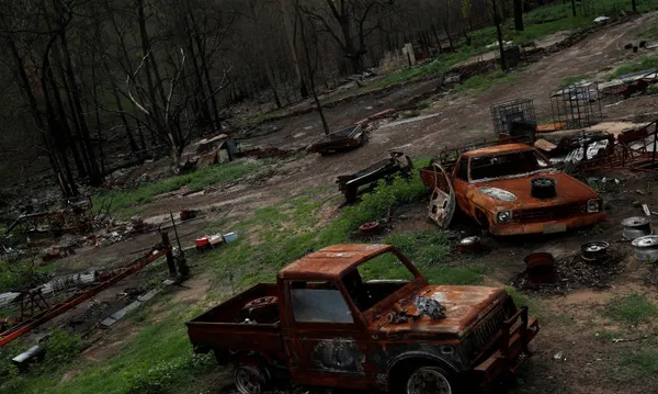 Những gì còn sót lại của một ngôi nhà bị cháy rụi trong mùa cháy rừng được chụp tại cộng đồng Wytaliba, New South Wales, Úc. - Ảnh: Reuters.