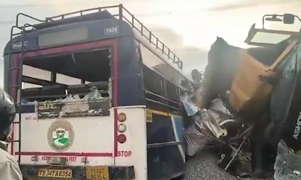 Một chiếc xe tải chạy quá tốc độ đi ngược chiều đã đâm trực diện vào một chiếc xe buýt của Tổng công ty vận tải đường bộ bang Telangana (TGRTC) chở khoảng 70 hành khách. Cú đâm mạnh đến mức nhiều hành khách tử vong ngay tại chỗ.