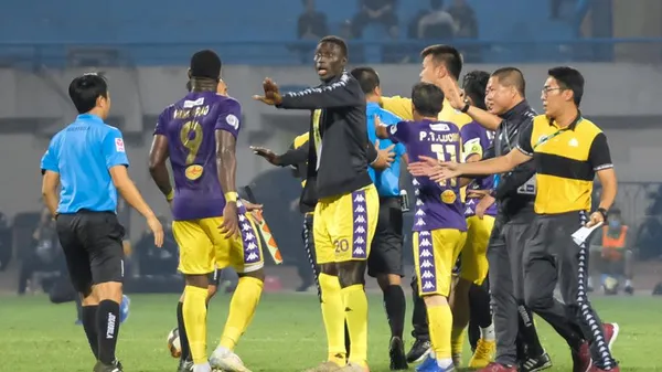 Kết thúc giờ nghỉ giữa trận Hà Nội vs Sài Gòn, ban huấn luyện của CLB Hà Nội đã bày tỏ thái độ không hài lòng với người điều khiển trận đấu