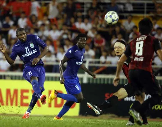 Bình Dương (áo xanh) và Muang Thong United đã trình diễn một trận đấu khá hấp dẫn.