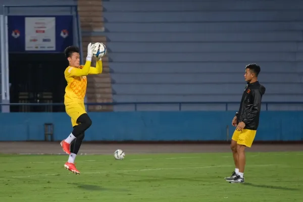 Theo quan sát, sân vận động diễn ra trận đấu mang tiêu chuẩn quốc tế với dàn đèn hiện đại. Không khí buổi tối cũng rất mát mẻ so với ban ngày nắng nóng 40 độ. Ít phút đầu buổi tập, U23 Việt Nam chỉ khởi động nhẹ nhàng trước khi bước vào những bài tập chiến thuật.