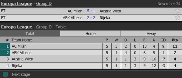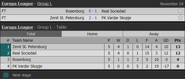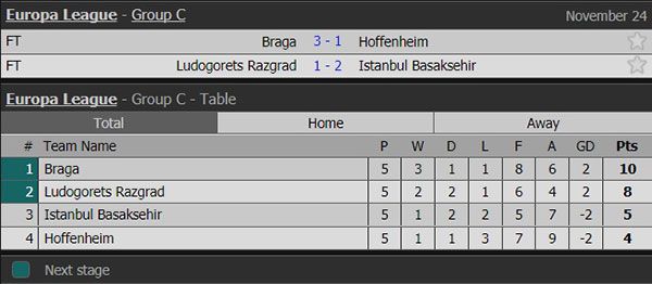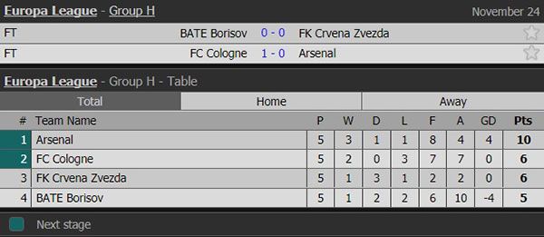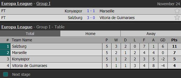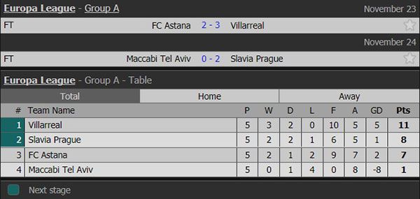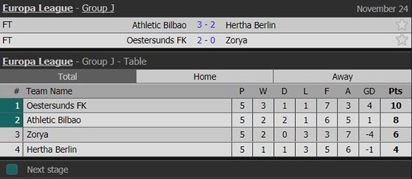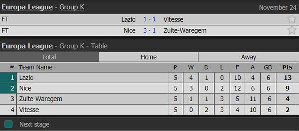 A+A-VOH Online cập nhật bảng xếp hạng tại các bảng đấu sau khi kết thúc lượt trận thứ 5 vòng bảng Europa League 2017-2018 ngày 24/11/2017.Bảng A: Xem toàn màn hình Bảng B: Bảng C: Bảng D: Bảng E: Bảng F: Bảng G: Bảng H: Bảng I: Bảng J: Bảng K: Bảng L: Kết quả Europa League ngày 24/11: Đã xác định được 16 đội đi tiếpKết quả cúp C1 châu Âu: Đã xác định được 8 đội đi tiếpBXH sau lượt trận thứ 5 vòng bảng Champions League 2017-2018Europa Leaguebảng xếp hạng Europa LeagueEuropa League 2017-2018