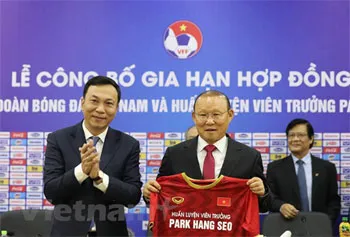 Huấn luyện viên Park Hang-seo gia hạn hợp đồng với Liên đoàn bóng đá Việt Nam tới năm 2022. Ảnh: VN+
