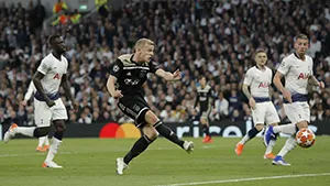 Thành quả sớm đến với đội khách. Ngay phút 15, từ một pha tấn công bài bản, Ziyech chọc khe cho Van de Beek ở vị trí chờ sẵn, sau 2 nhịp cân chỉnh, tiền vệ Ajax dứt điểm hiểm hóc vào góc xa không cho Lloris bất cứ cơ hội nào để cản phá, mở tỷ số cho đại diện đến từ Hà Lan.