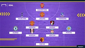 Đội hình tiêu biểu vòng 18 Ngoại hạng Anh được bố trí theo sơ đồ 4-5-1 gồm có: Vị trí người gác đền thuộc về thủ thành Ben Foster (Watford); Hàng phòng ngự với sự góp mặt của Ricardo Pereira (Leicester City), Alfie Mawson (Fulham), Van Dijk (Liverpool), Marcos Alonso (Chelsea); Nơi hàng tiền vệ gồm có Andros Townsend (Crystal Palace), Ander Herrera (Manchester United), Jesse Lingard (Manchester United), David Brooks (Bournermouth), Son Heung-min (Tottenham); Vị trí tiền đạo thuộc về Aubameyang (Arsenal).