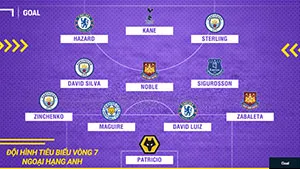 Đội hình tiêu biểu vòng 7 Ngoại hạng Anh được bố trí theo sơ đồ 4-3-3 gồm có: Vị trí người gác đền thuộc về thủ thành Rui Patricio (Wolves); Hàng hậu vệ với sự góp mặt của Pablo Zabaleta (West Ham), David Luiz (Chelsea), Harry Maguire (Leicester City), Oleksandr Zinchenko (Manchester City); Nơi hàng tiền vệ gồm có Mark Noble (West Ham), David Silva (Manchester City), Gylfi Sigurdsson (Everton); Ở vị trí tiền đạo gồm Raheem Sterling (Manchester City), Eden Hazard (Chelsea), Harry Kane (Tottenham).