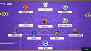 Đội hình tiêu biểu vòng 9 Ngoại hạng Anh 2018-2019. Ảnh: GOAL
