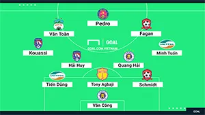 Tiền vệ trái - Yao Kouassi (Than Quảng Ninh): Kouassi đóng vai trò quan trọng nhất trong chiến thắng 2-1 của Than Quảng Ninh trước Sanna Khánh Hòa. Cầu thủ người Bờ Biển Ngà trực tiếp ghi bàn quân bình tỷ số trước khi kiến tạo giúp Hải Huy ghi bàn.